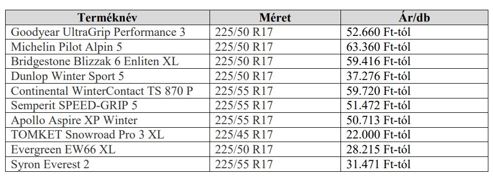 Autótulajdonosként azt már tudhatjuk, hogy ha tartósan 7 ℃ alá csökken a hőmérséklet, a nyári abroncsokat le kell cserélni télire. Fontos, hogy mindig az adott időjárási és útviszonyokhoz igazodjunk, s vegyük figyelembe, hogy a téli abroncsok alacsony hőmérsékleten és csapadékos időjárási körülmények között is jobban teljesítenek, mint a nyári gumik. Ár-összehasonlító körképünkben a választáshoz igyekszünk útmutatást adni. (FÉBÉSZ)