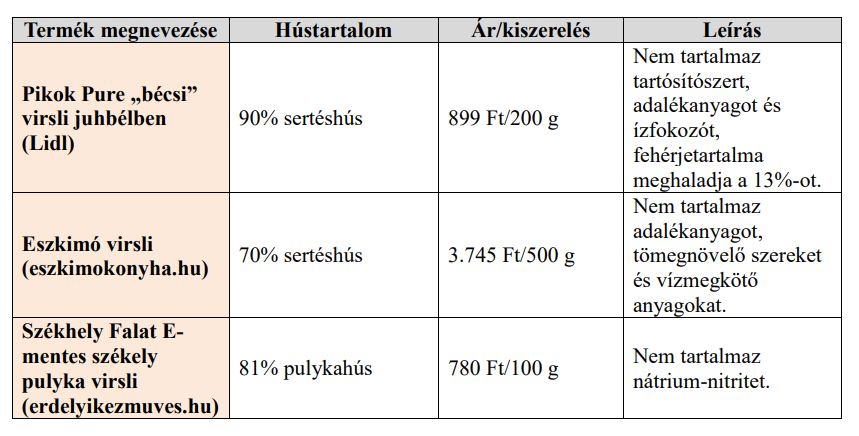 Mivel a boltokban az árat tekintve széles skálán mozognak a virslik – egyes gyártók kilogrammonként akár 7.000-12.000 Ft-ot is elkérnek termékeikért –, példaként megnéztünk néhányat az ár és összetétel szempontjából. Ezért az árért a vásárló talán joggal várhatja, hogy minőségi terméket vesz, ennél a termékcsoportnál azonban úgy tűnik, nincs arányban az ár a minőséggel. A megnézett termékek kivétel nélkül tartalmaznak például nátrium-nitritet, e mellett tele vannak foszfátokkal, ízfokozóval, stabilizátorral, színezékkel.